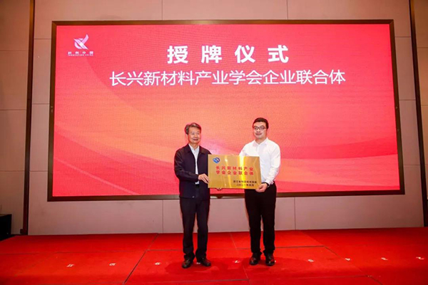 杨树锋和姜长才为浙江省科协新材料新能源学会联合体揭牌,姜长才为长兴新材料产业学会企业联合体授牌,姜长才和周文龙为联合体21家省级学会授牌,杨树锋为专家委员会主任姚献平颁发聘书。